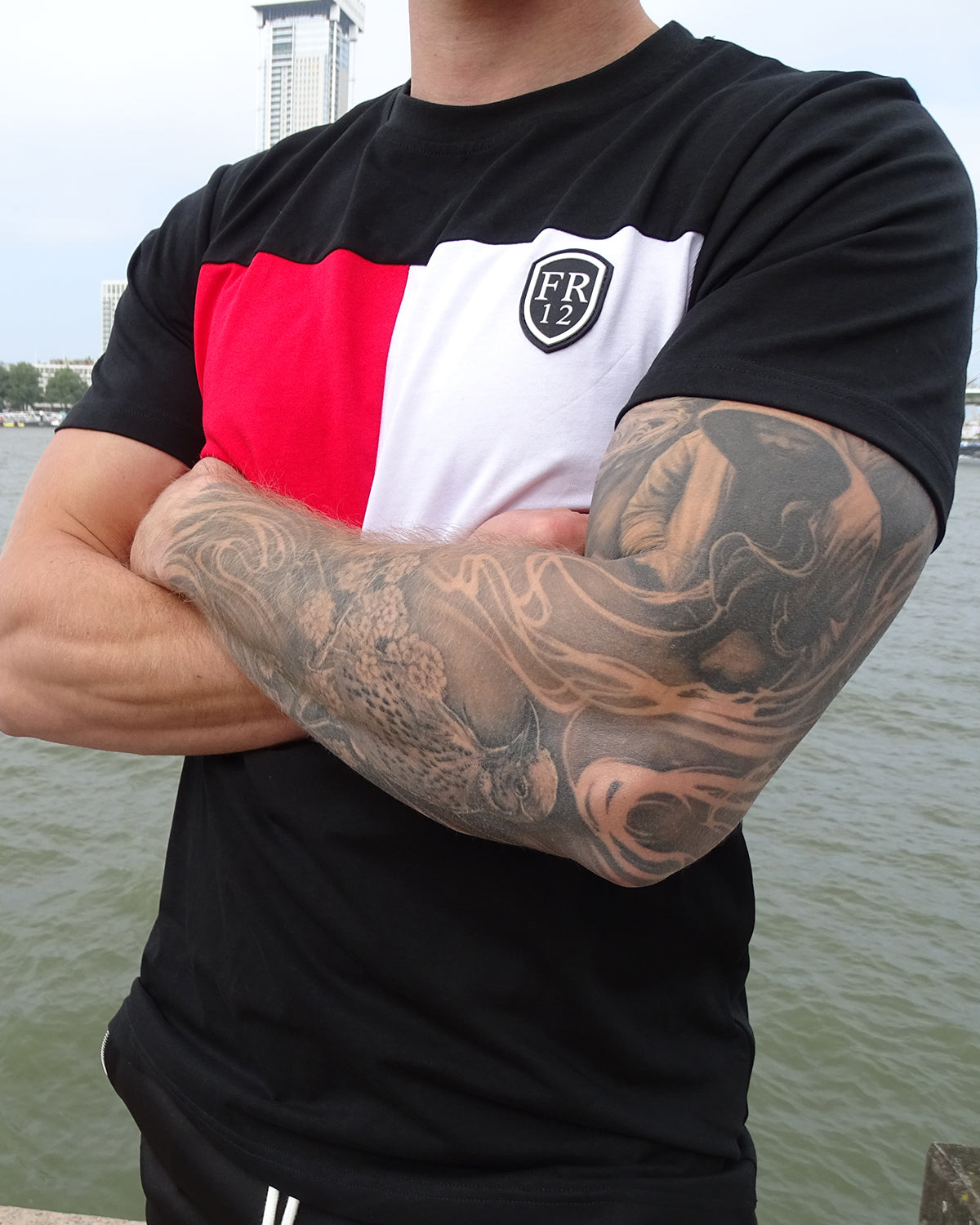 Een zwart shirt dat gemaakt is van 100% katoen, wat zorgt voor een comfortabel gevoel wanneer je het draagt. Het FR12-shirt is voorzien van een PVC-patch op de borst.